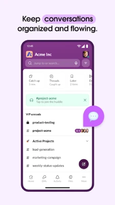 Slack ir viena centralizēta platforma, kas pārveido jūsu darba ikdienu, apvienojot sanāksmes, dokumentu koplietošanu, failu apmaiņu un piekļuvi iecienītākajām lietotnēm. Tā ir vieta, kurā komandas var efektīvi sadarboties, veidot partnerības ar ārējiem kolēģiem un izmantot mākslīgā intelekta risinājumus, lai gūtu priekšrocības. Ar Slack jūsu rīcībā ir viss nepieciešamais, lai veicinātu uzņēmuma izaugsmi, padarot darbu organizētu un produktīvu.