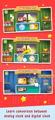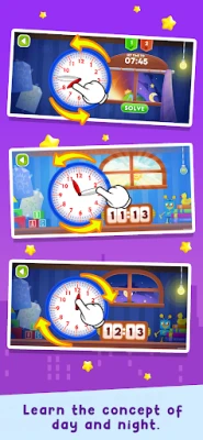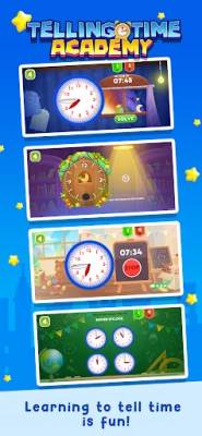 "Telling Time Academy" ir izglītojoša lietotne bērniem no 3 līdz 12 gadu vecumam. Izstrādāta ar izglītības ekspertu atbalstu, tā piedāvā 5 grūtības līmeņus, lai palīdzētu bērniem progresīvi apgūt laika noteikšanu un pulksteņa rādīšanu.
