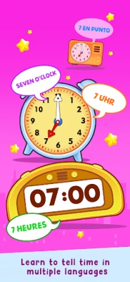 Laika skaidrošana maziem bērniem var būt sarežģīta, taču "Telling Time Academy" padara šo procesu par aizraujošu piedzīvojumu. Mēs saprotam, cik svarīgi ir līdzsvarot mācīšanos ar jautrību, tāpēc lietotne piedāvā harmonisku izglītības un rotaļīgas interaktivitātes apvienojumu. Bērni varēs iepazīties ar deviņiem burvīgi ilustrētiem interaktīviem pulksteņiem ar kustīgām rādītāju rokām, kas pielāgotas maziem pirkstiņiem. Animēta, rotējoša Zeme maina fonu no rītausmas līdz naktij, palīdzot izprast dienas un nakts maiņu, turklāt lietotnes saskarne ir īpaši izstrādāta, lai būtu viegli lietojama jaunākajiem mācību dalībniekiem. Lai nodrošinātu maksimālu pieejamību, "Telling Time Academy" ir pieejama vairākās valodās, ko ierunājuši profesionāli dzimtās valodas runātāji.