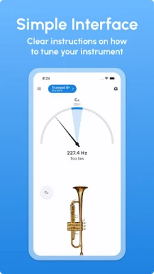 Šis tūneris piedāvā divas jaudīgas pieejas jūsu instrumenta noskaņošanai un muzikalitātes attīstībai. Izmantojiet reālo skaņu funkciju, pieskaroties notij, lai dzirdētu perfekti noskaņotu trompetes toni, un pēc tam saskaņojiet to ar savu instrumentu. Tādējādi efektīvi trenēsiet savu muzikālo dzirdi. Ātrai un bezrūpīgai skaņošanai izmantojiet automātisko režīmu – atskaņojiet jebkuru noti, un lietotne acumirklī to atpazīs, sniedzot precīzus norādījumus, lai jūs varētu nekavējoties turpināt spēlēt.
